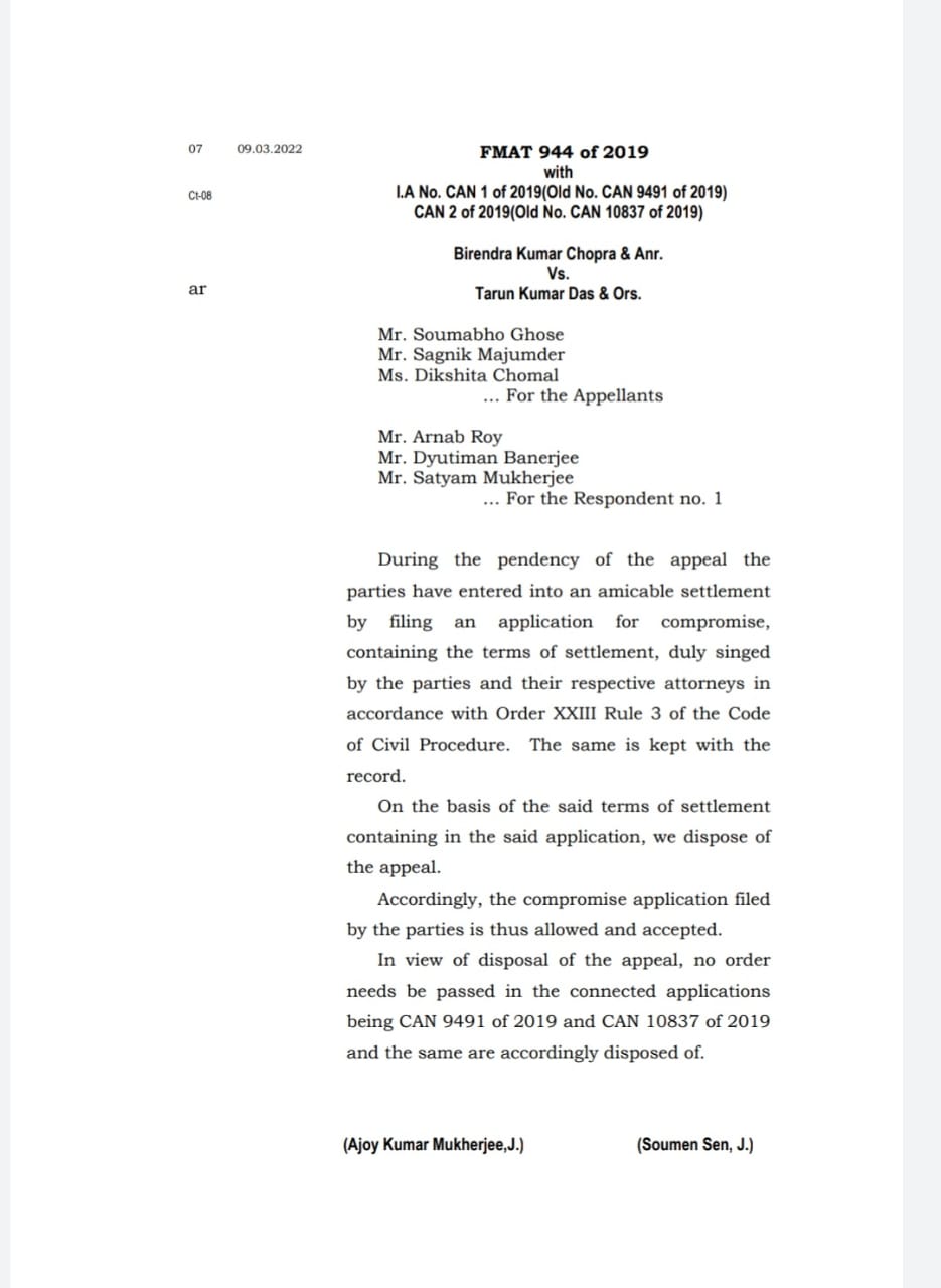 Cal HC Order dated 09.03.2022 disposing off appeal and suit in our favour.jpeg